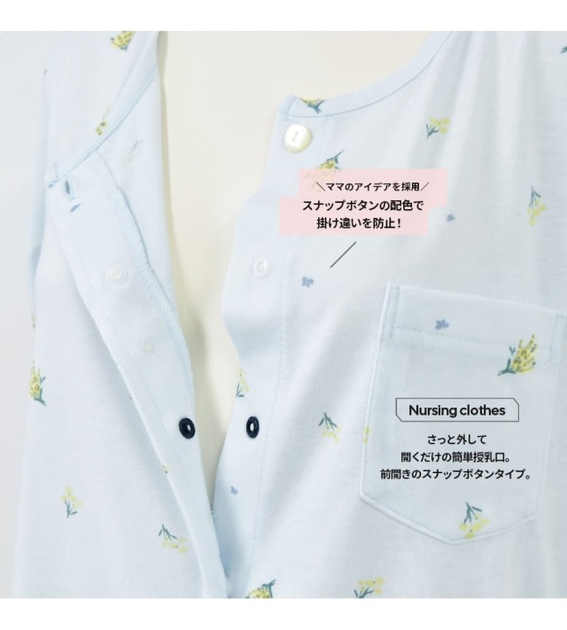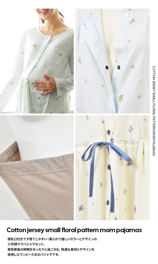 授乳口付きで子育てしやすい!柔らかで優しいカラーとデザインの小花柄ママパジャマセット。