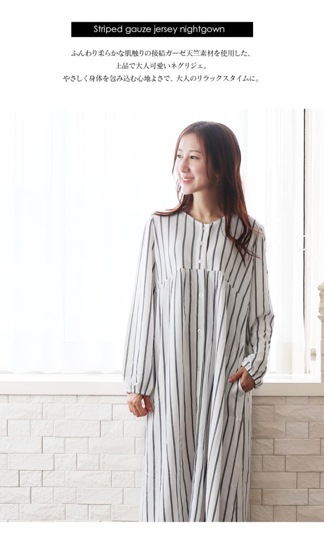 爽やかな印象のナチュラルなストライプ柄が入った上品で大人可愛いネグリジェ。