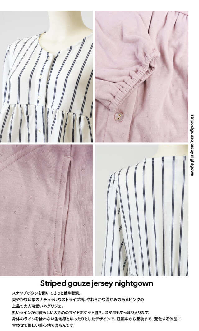 ・爽やかな季節にぴったりなナチュラルストライプと温かみのあるやさしいピンクカラーがそれぞれ上品で大人可愛いネグリジェ。