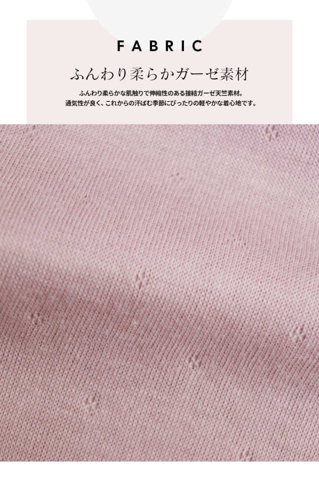 ・柔らかな肌触りで伸縮性のある接結ガーゼ天竺素材を使用。