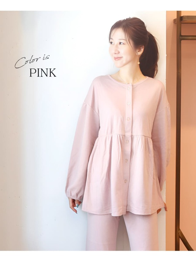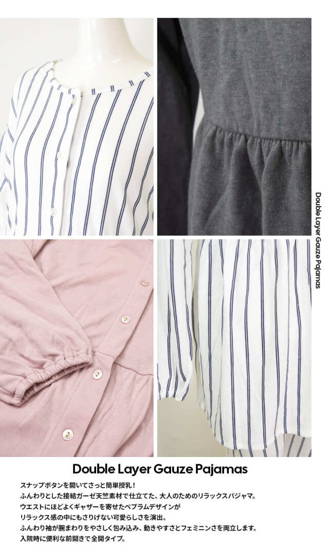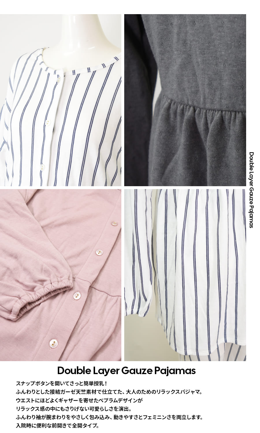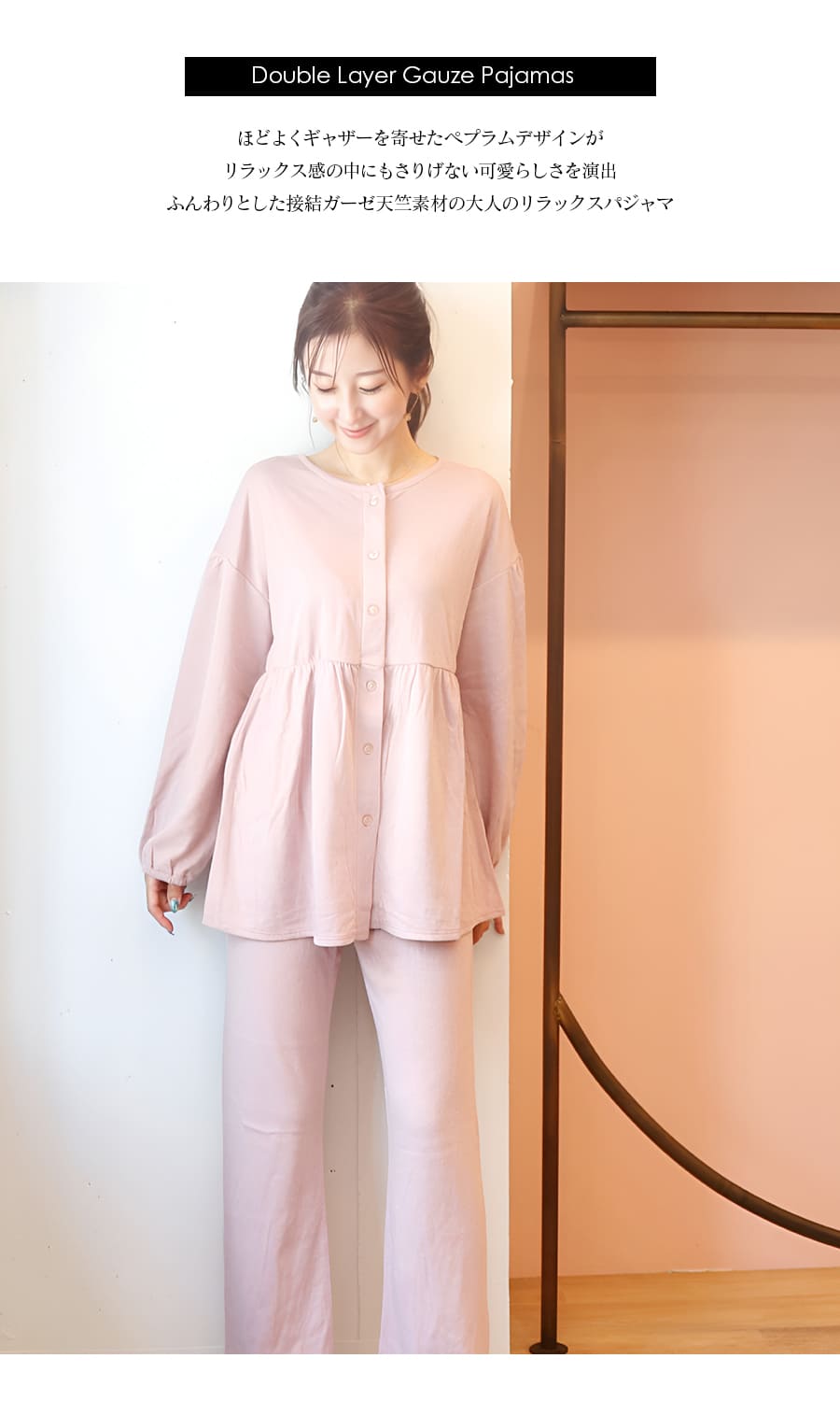 ふんわりとした接結ガーゼ天竺素材で仕立てた、大人可愛いパジャマセットです。