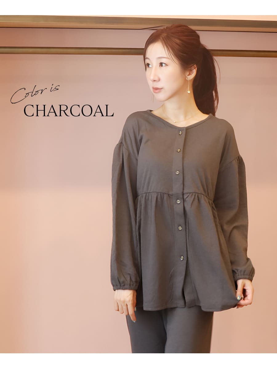 ・ウエストにほどよくギャザーを寄せたペプラムデザインがリラックス感の中にもさりげない可愛らしさを演出。