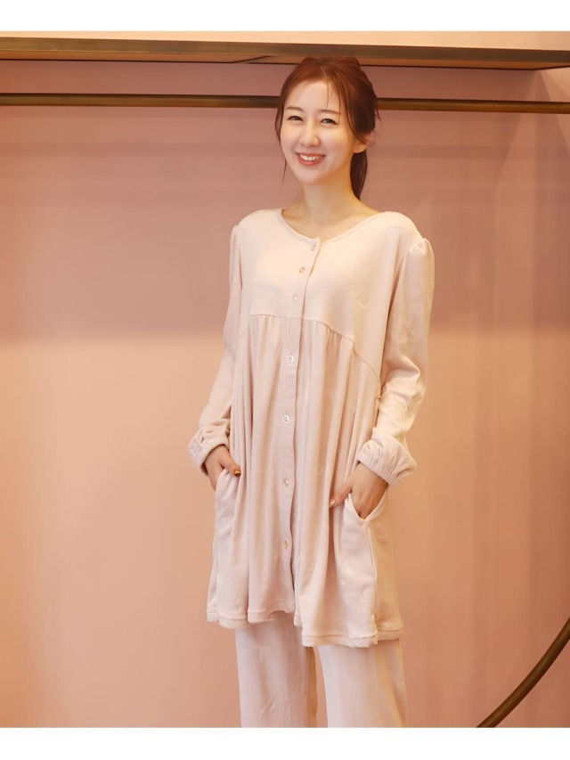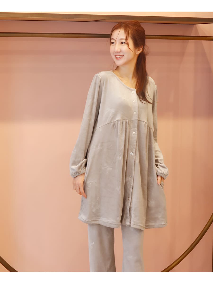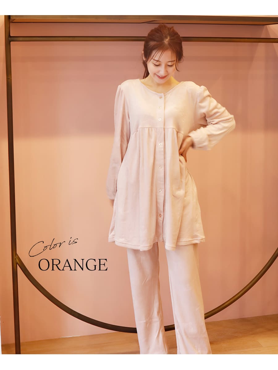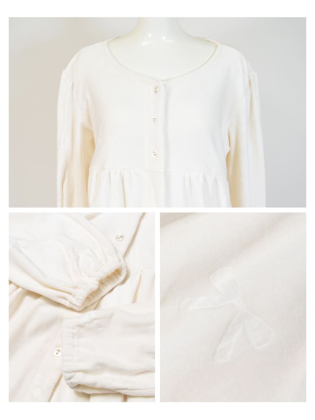 なめらかで着心地の良いベロア生地で仕立てたパジャマ上下セットです。