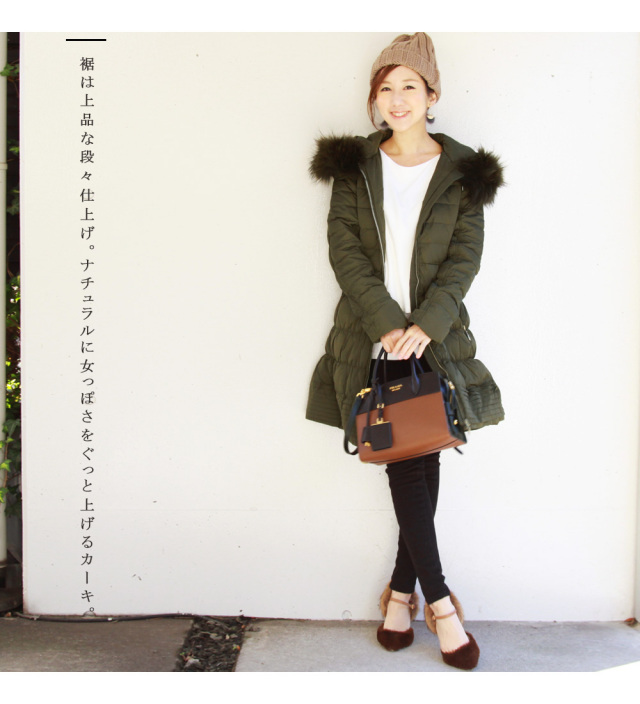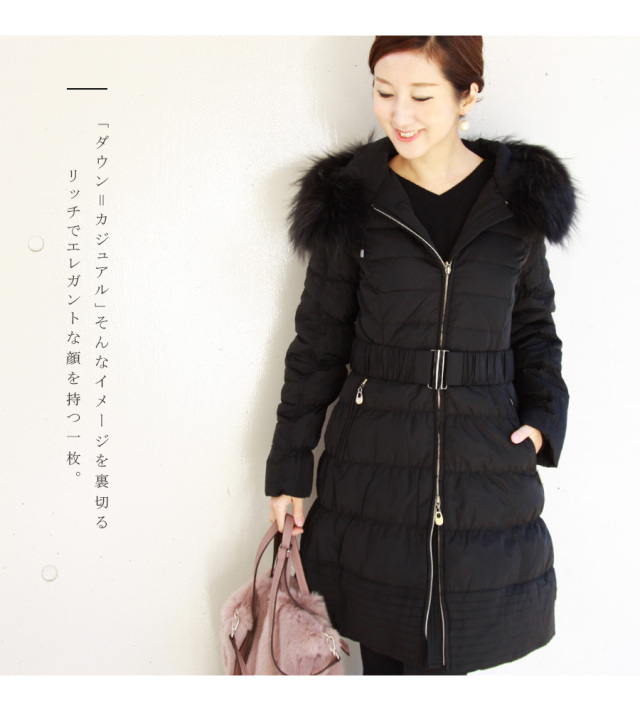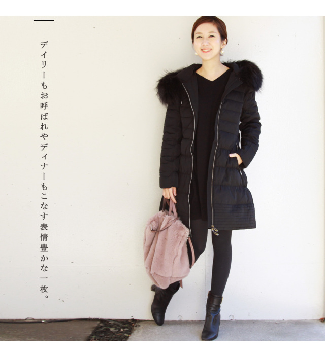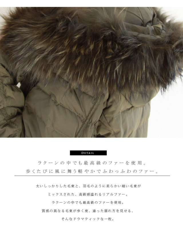 プレミアムダウン&リアルファーを使い、細部まで高級感溢れるディテールにこだわったリッチなダウンコート。着膨れしない美しいシルエット。