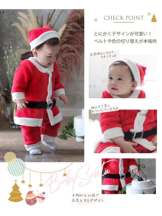 | 製品名: | 【キッズ・ベビー】クリスマスなりきりサンタさんロンパース&帽子2点セット |