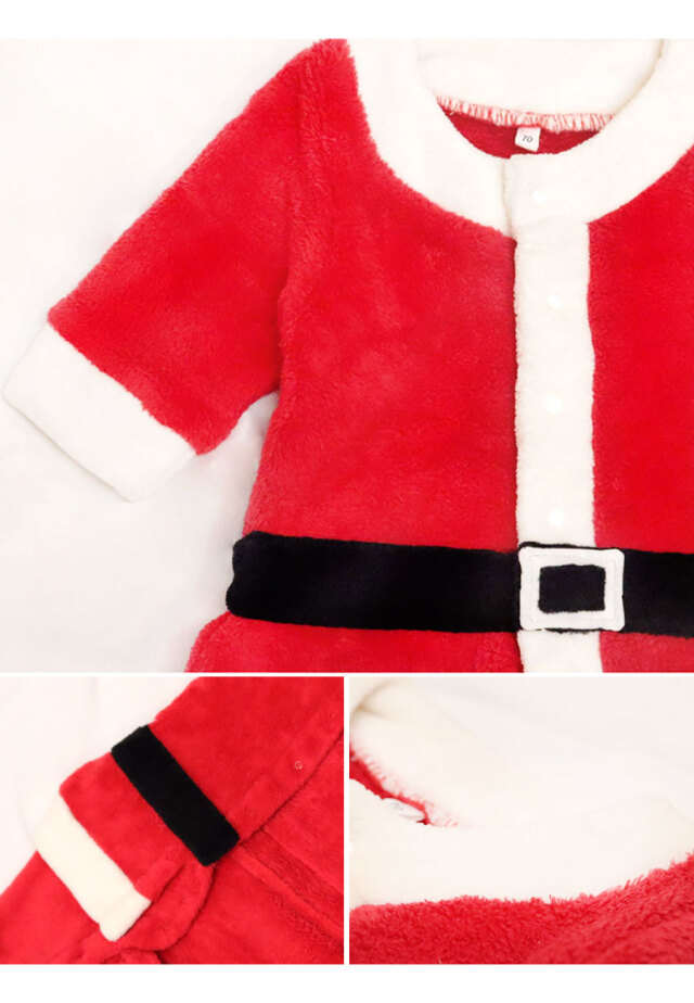 ベビー着ぐるみ クリスマス もこもこロンパース ベビーフォト サンタコス ベビー服 ワンピース サンタ 衣装 コスチューム キッズ 子供 赤ちゃん 男の子 女の子 サンタクロース サンタさん プレゼント ギフト 出産祝い 防寒 フリース ボア 70 80 90