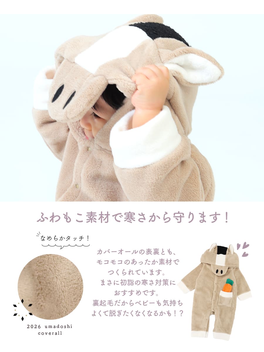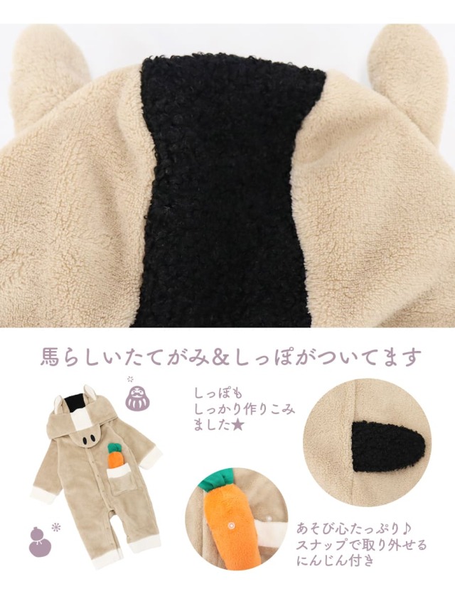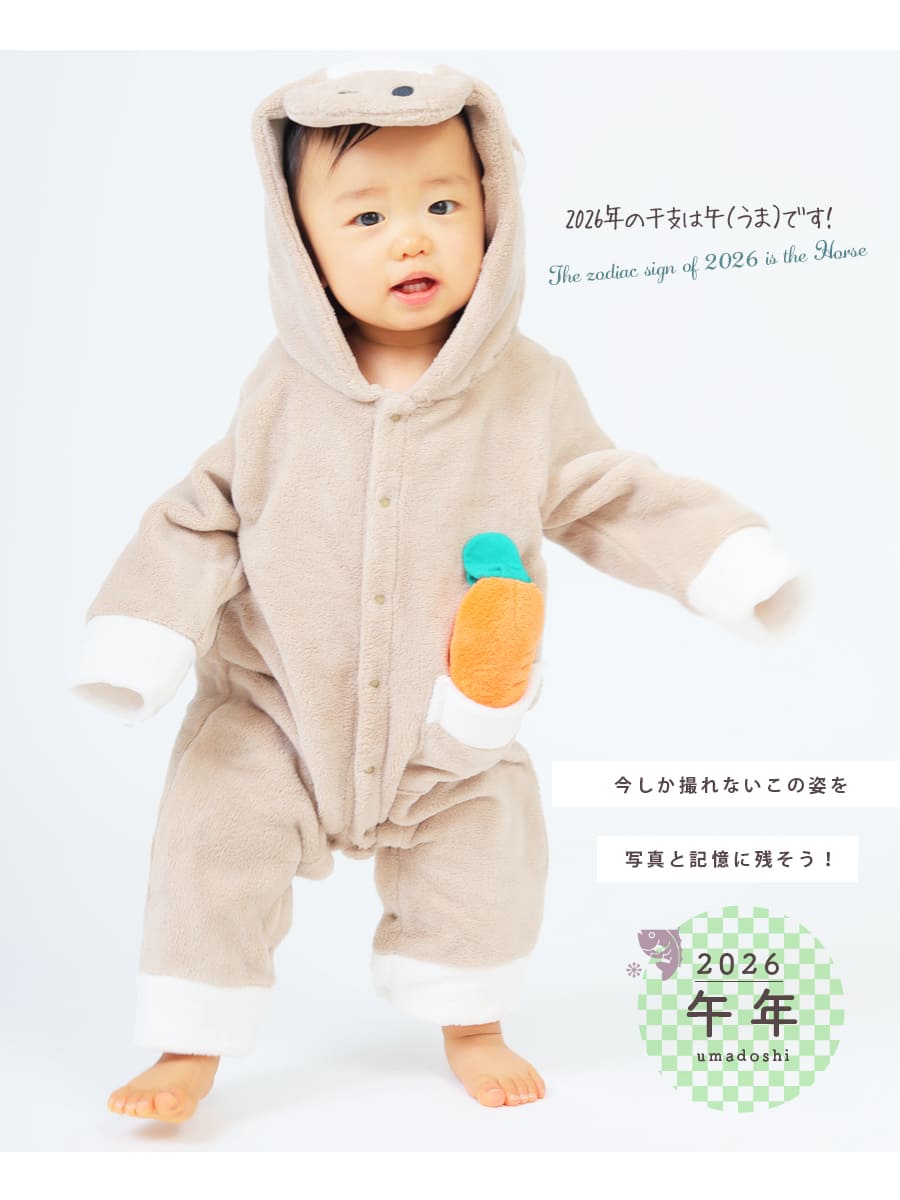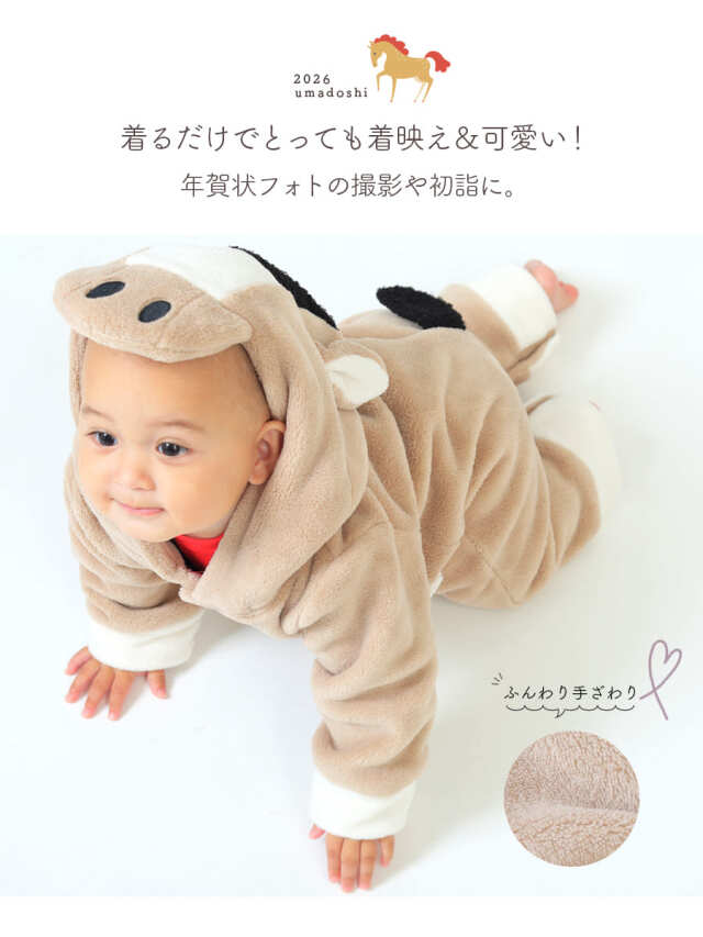 商品カテゴリ:赤ちゃん ベビー キッズ カバーオール ロンパース ベビー着ぐるみ 2026 午年 馬 うま ウマ 干支 十二支 年賀状 記念撮影 コスプレ コスチューム アニマルコスチューム ベビーフォト ベビー服 衣装 キッズ 子供 赤ちゃん 男の子 女の子 お正月 年賀 年賀状 プレゼント ギフト 出産祝い 秋冬 防寒 フリース ボア 70cm 80cm 妊娠 出産 産前 産後 ママ 親子フォト フォトスタジオ Milk tea ミルクティー