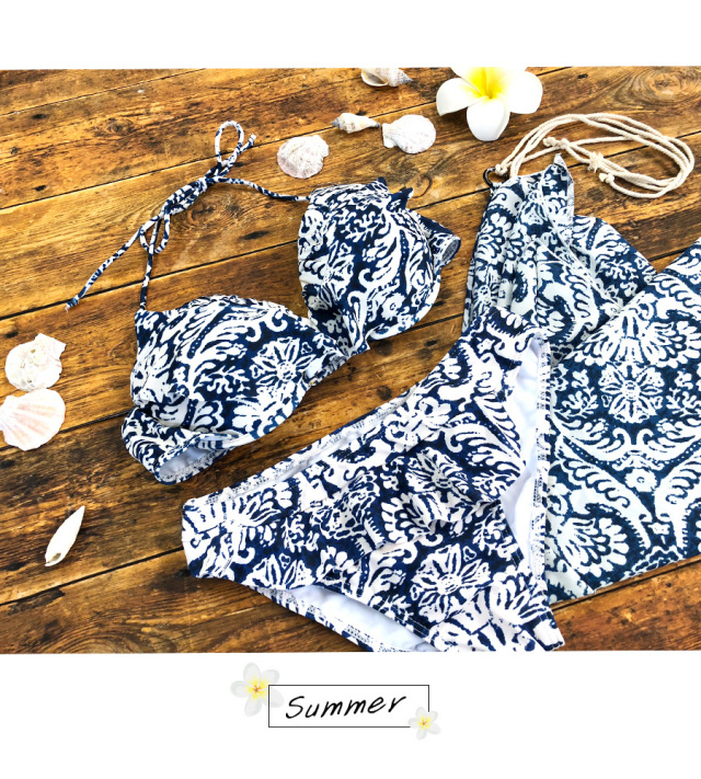 爽やかななブルーが眩しいエスニック柄がお洒落な水着