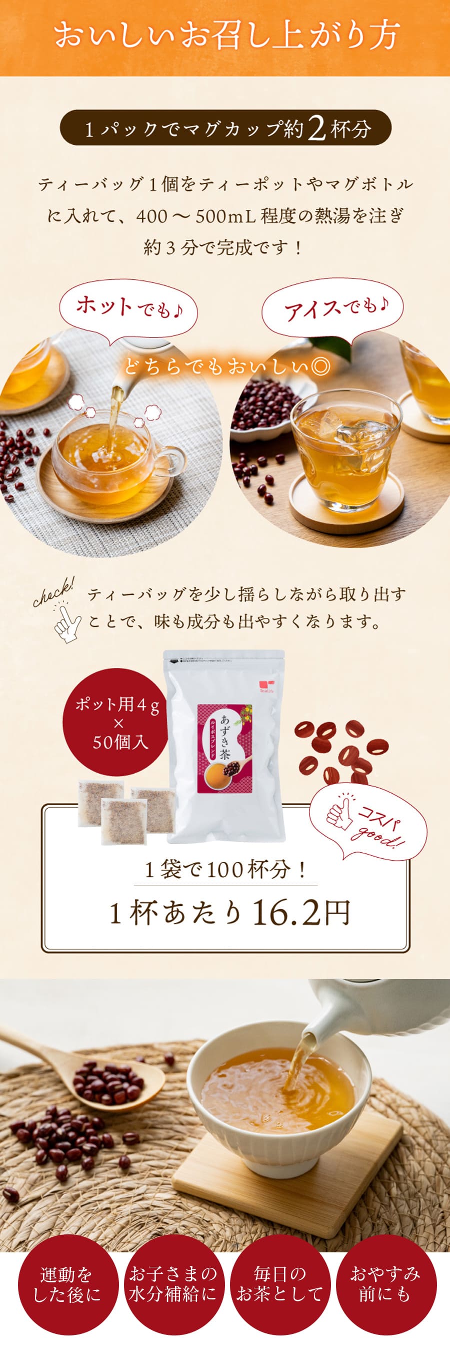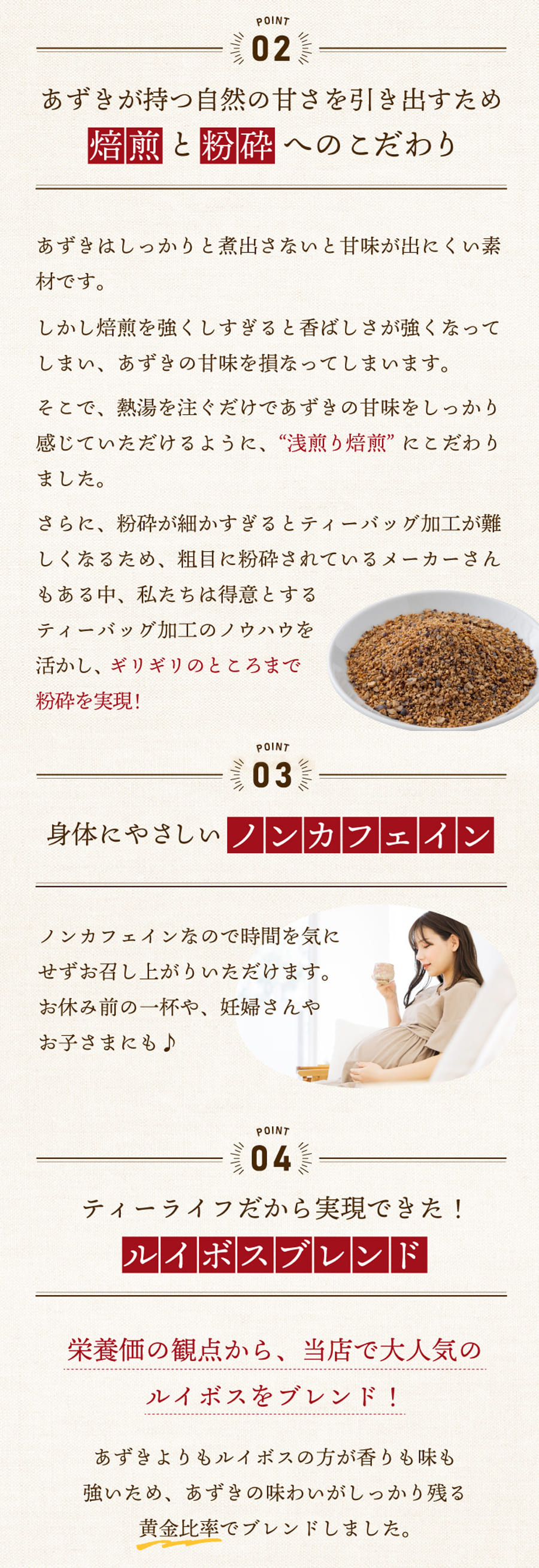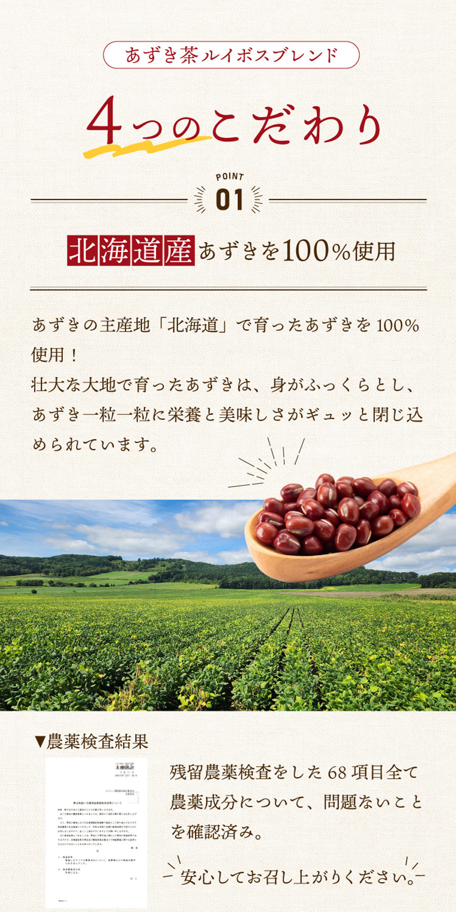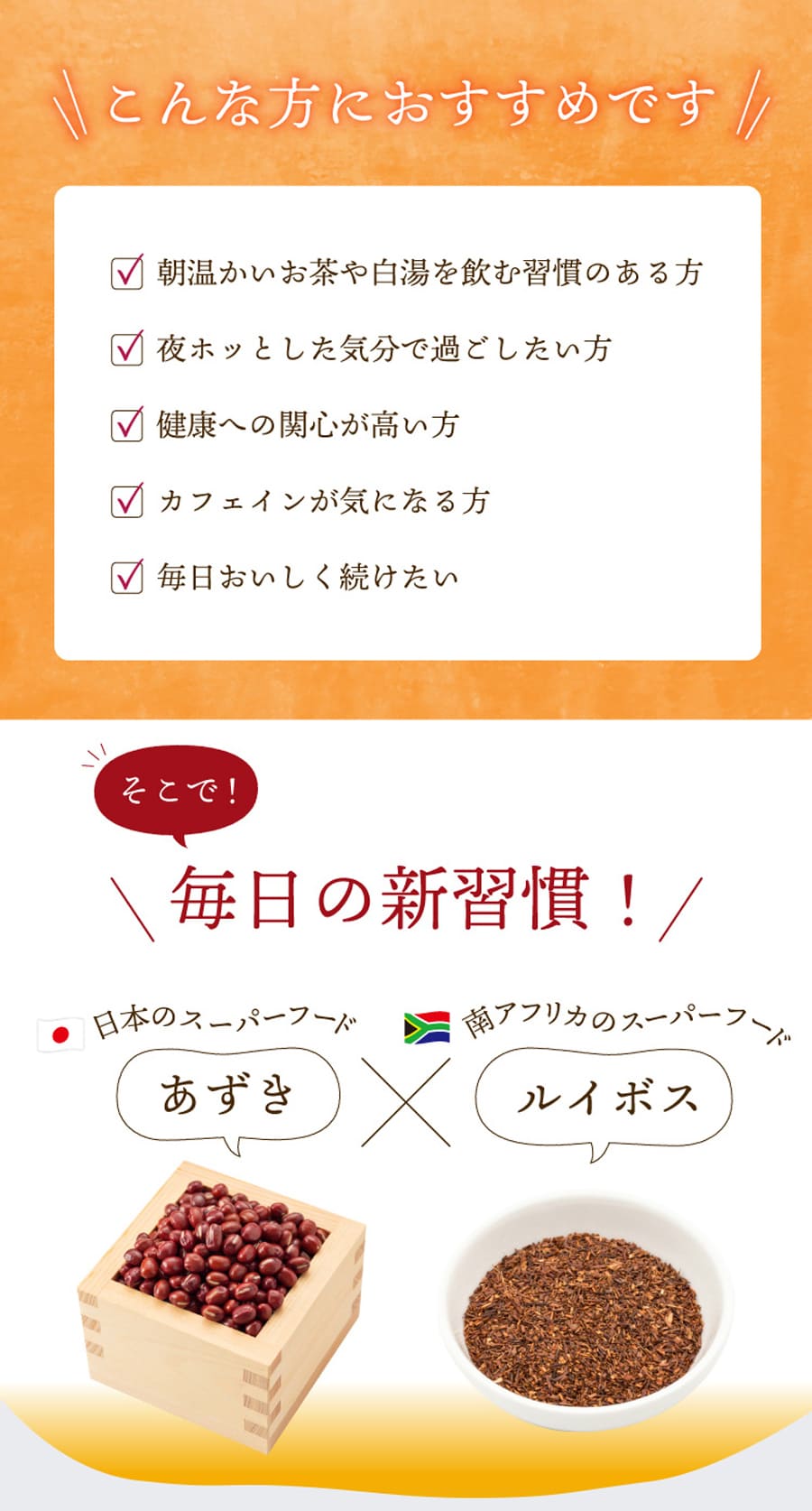 安心のノンカフェインで飲みやすいあずき茶ルイボスブレンド。
