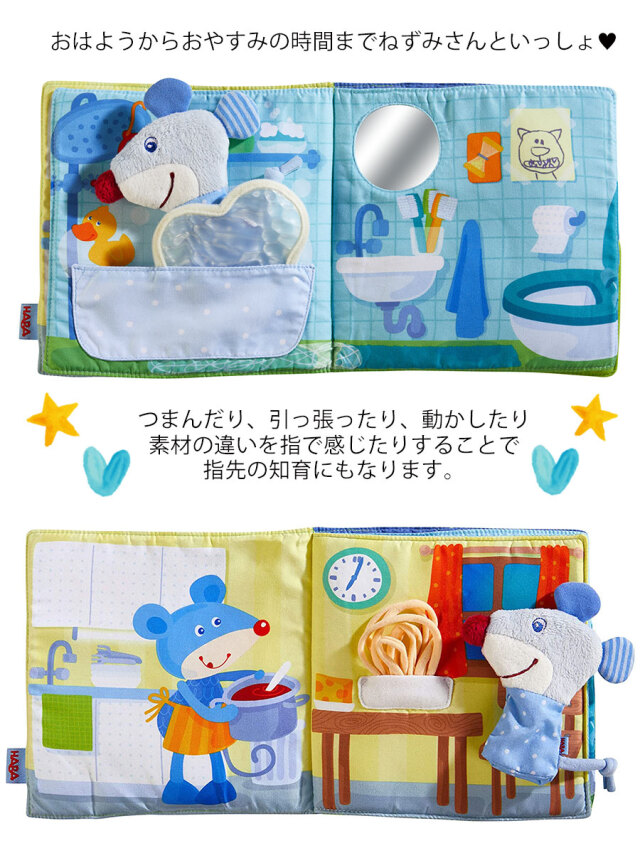 おはようからおやすみの時間まで見て触れて楽しめる知育布絵本 HABA(ハバ)クロースブック・おやすみ布絵本
