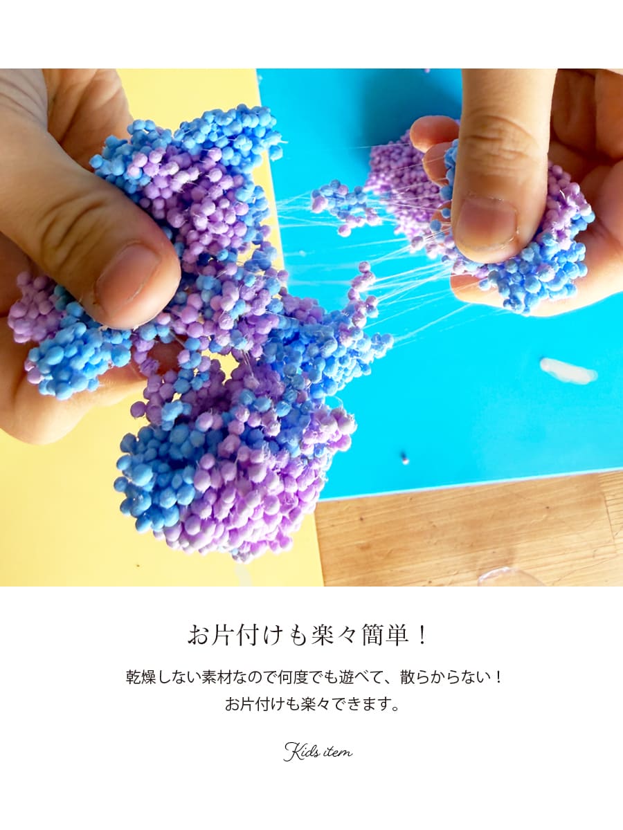 乾燥しない素材なので何度でも遊べて、散らからない!