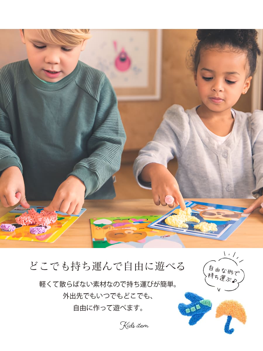 軽くて柔らかな新感覚の玩具で作る力や想像力の発達を手伝います。